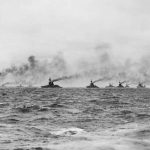 By this point in time the 5th Battle Squadron, its commander having finally grasped the situation, had reversed course, increased speed, closed the distance and begun exchanging fire with the German battlecruisers, but Evan-Thomas remained unaware for several minutes that his course would also take him within range of the approaching German battleships. After a brief engagement with the German battlecruisers, during which (in response to Beatty’s signal) he passed to the west of the northbound battlecruisers, Evan-Thomas sighted the High Seas Fleet battle line emerging out of the mist in front of him. Beatty thereupon – belatedly – ordered Evan-Thomas to execute a column turn to the north: a dangerous sequential turn, rather than a simultaneous turn by all four battleships. The 5th Battle Squadron was briefly taken under fire by the High Seas Fleet battleships during this highly vulnerable turning maneuver, and Evan-Thomas – blindly following orders –incurred serious damage to two of his splendid ships but fortunately, none were fatally crippled. Thus ended the first and most costly phase of the battle, which by any measure Vice-Admiral Beatty had tragically mismanaged.